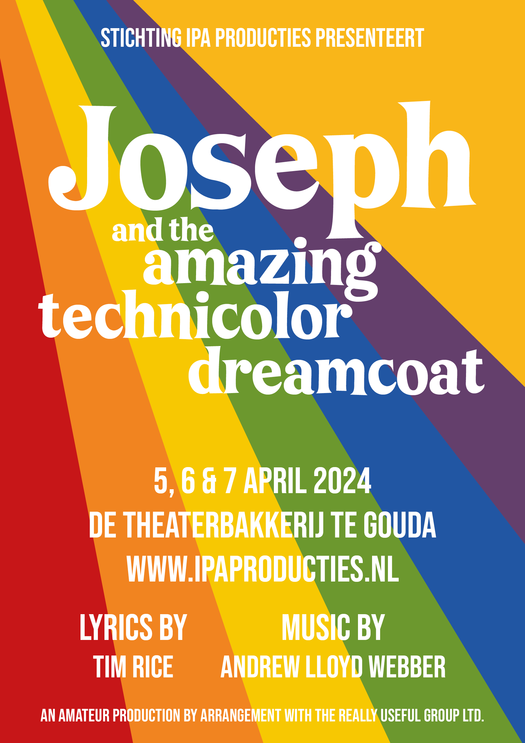 De familiemusical JOSEPH AND THE AMAZING TECHNICOLOR DREAMCOAT was op 5, 6 en 7 april 2024 te zien in de Theaterbakkerij te Gouda. Het is een musical van Tim Rice en Andrew Lloyd Webber en is gebaseerd op het verhaal van Jozef en zijn broers uit de bijbel.